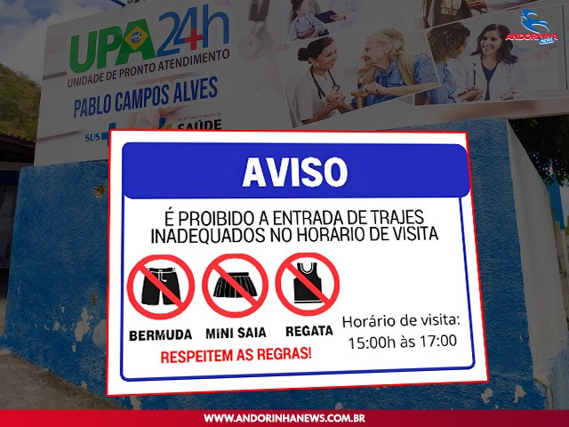 As visitas aos pacientes agora acontecerão das 15h às 17h. Também foi estabelecido um código de vestimenta: não será permitida a entrada com shorts curtos, mini saias, blusas regatas ou roupas transparentes.